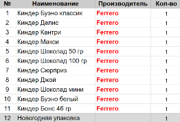 Вес: 463 гр.Состав: Буэно классик 1 шт, Делис 1 шт, Кантри 1 шт, Макси 1 шт, Шоколад 50 гр 1 шт, Шоколад 100 гр 1 шт, Сюрприз 1 шт, Джой 1 шт, Шоколад мини 1 шт, Буэно белый 1шт, Бонс 46 гр 1 шт