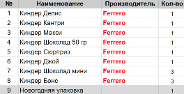 Вес: 243 гр.Состав: Делис 1 шт, Кантри 1 шт, Макси 1 шт, Шоколад 50 гр 1 шт, Сюрприз 1 шт, Джой 1 шт, Шоколад мини 3 шт, Бонс 3 шт