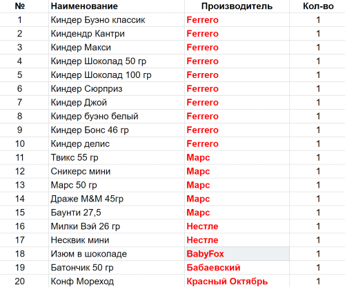Вес: 860 гр.Состав: Буэно классик 1 шт, Делис 1 шт, Кантри 1 шт, Макси 1 шт, Шоколад 50 гр 1 шт, Шоколад 100 гр 1 шт, Сюрприз 1 шт, Джой 1 шт, Буэно белый 1 шт, Бонс 46 гр 1 шт, Твикс 55гр 1 шт, Сникерс мини 1 шт, Милки Вэй 26гр 1 шт, Марс 50гр 1 шт, Драже M&M 45гр 1 шт, Изюм в шоколаде 1 шт, Батончик 50гр 1 шт, Несквик мини 1 шт, кнф. Мореход 1 шт, Баунти 27,5 гр 1 шт