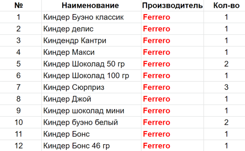 Вес: 630 гр.Состав: Буэно классик 1 шт, Делис 1 шт, Кантри 1 шт, Макси 1 шт, Шоколад 50 гр 2 шт, Шоколад 100 гр 1 шт, Сюрприз 3 шт, Джой 1 шт, Шоколад мини 1 шт, Буэно белый 2 шт, Бонс 46 гр 1 шт, Бонс 1 шт