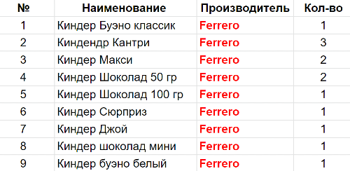 Вес: 550 гр.Состав: Буэно классик 1 шт, Кантри 3 шт, Макси 2 шт, Шоколад 50 гр 2 шт, Шоколад 100 гр 1 шт, Сюрприз 1 шт, Джой 1 шт, Шоколад мини 1 шт, Буэно белый 1 шт