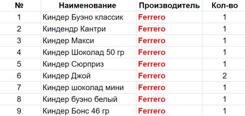 Вес: 350 гр.Состав: Буэно классик 1 шт, Кантри 1 шт, Макси 1 шт, Шоколад 50 гр 1 шт, Сюрприз 1 шт, Джой 2 шт, Шоколад мини 1 шт, Буэно белый 1 шт, Бонс 46 гр 1 шт