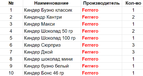 Вес: 640 гр.Состав: Буэно классик 1 шт, Кантри 2 шт, Макси 1 шт, Шоколад 50 гр 2 шт, Шоколад 100 гр 1 шт, Сюрприз 3 шт, Джой 3 шт, Шоколад мини 1 шт, Буэно белый 1 шт, Бонс 46 гр 1 шт