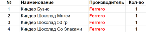 Состав:Киндер Буэно-1 шт, Киндер Шоколад Макси-1 шт,Киндер Шоколад 50 гр-1 шт, Киндер Шоколад Со Злаками-1 шт