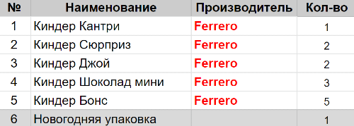 Состав подарка: