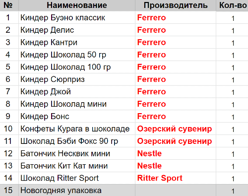 Артикул: ПК-1307 Вес: 1000 гр. Внутри 23 сладости